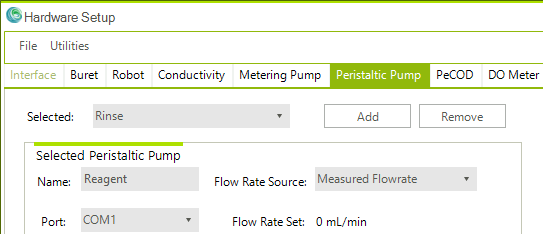 - Navigate to Hardware/Hardware Configuration/Peristaltic Pump.