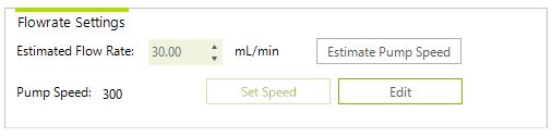 3. For the estimated flowrate, enter 30, then click Estimate Pump Speed. A Pump Speed of 300 RPM should appear. Now click Set Speed.
