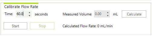 5. After the timer has counted down and the pump has dispensed solution, typically the test is repeated at least 3 times, and the averaged volume is calculated. Enter the averaged volume into the field called "Measured Volume", then click Calculate. This will update the flowrate of the pump: